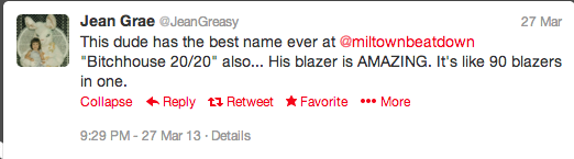 They were in town for a True Skool event at UWM, and came by afterwards to check out the sounds of the Miltown Beat Down. Some great things came out of this, including some valuable networking with Pharohe and D-Ski, and some awesome tweets from Jean aka JeanGreasy…